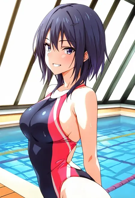 彼女のデフォルトの衣装は学校制服、下着、競泳水着。