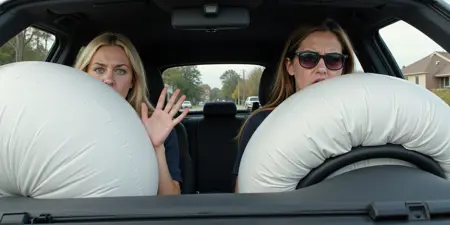 다양한 시점과 각도를 지원하지만, 정면에서 촬영하는 경우 에어백이 구성 요소의 다른 부분과 어떻게 위치하는지 명시하는 것이 도움이 됩니다(예: 대시보드가 에어백 앞에 있고, 에어백이 피사체 앞에 위치함).