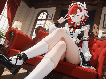 | トレーニングワード | aika,1girl,solo,red hair,detached sleeves,panorama,apron,virtual youtuber,dress,portrait,bell,multicolored hair,bow,maid,white apron,socks,skirt,happy,long sleeves,white socks,looking_at_viewer,black footwear,smile,white Feather eye mask,no eyes,コピーしました! |