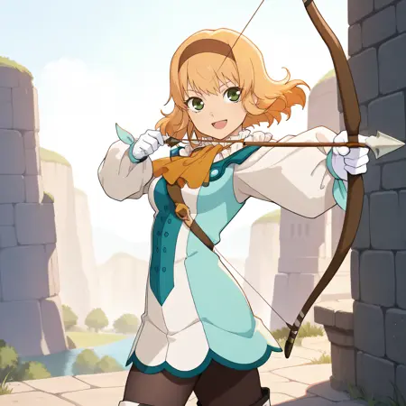 这个Lora仅使用了她在游戏中的形象图片进行训练。我没有玩过这款游戏,也没看过动画,但我喜欢这个女孩,而且我也练习射箭。