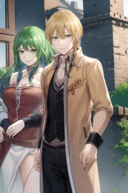 AllenNemesis, a man and a woman, hetero, standing, smile, cowboy shot