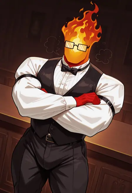 그릴비, 불꽃 머리, 불꽃 몸, 안경,