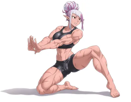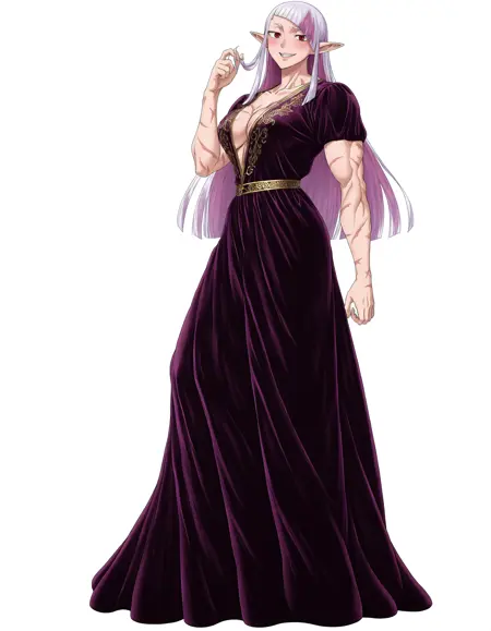morrigan, 1girl, red eyes, mature female, pointy ears, asymmetrical bangs, long hair, multicolored hair, white hair, light_purple hair, scars on body,