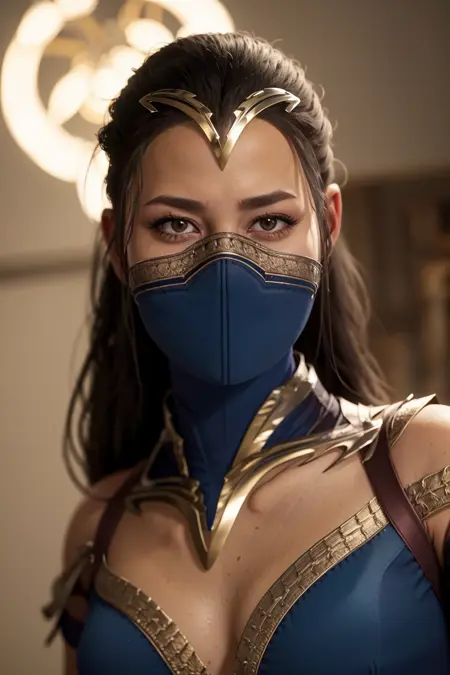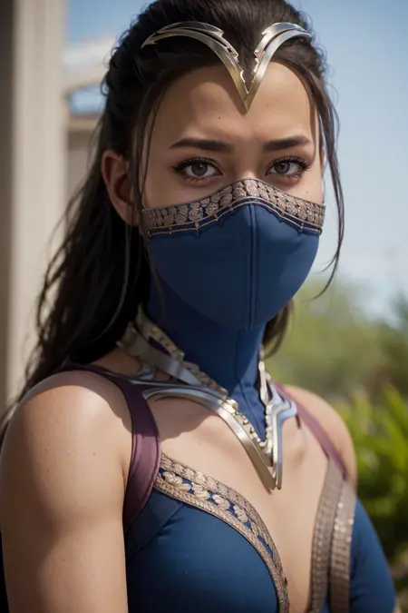 其他提示词:黑发,发髻,棕色眼睛,口部面罩,肘部手套,露乳切口,盔甲,肩甲,深色皮肤,服装切口,忍者