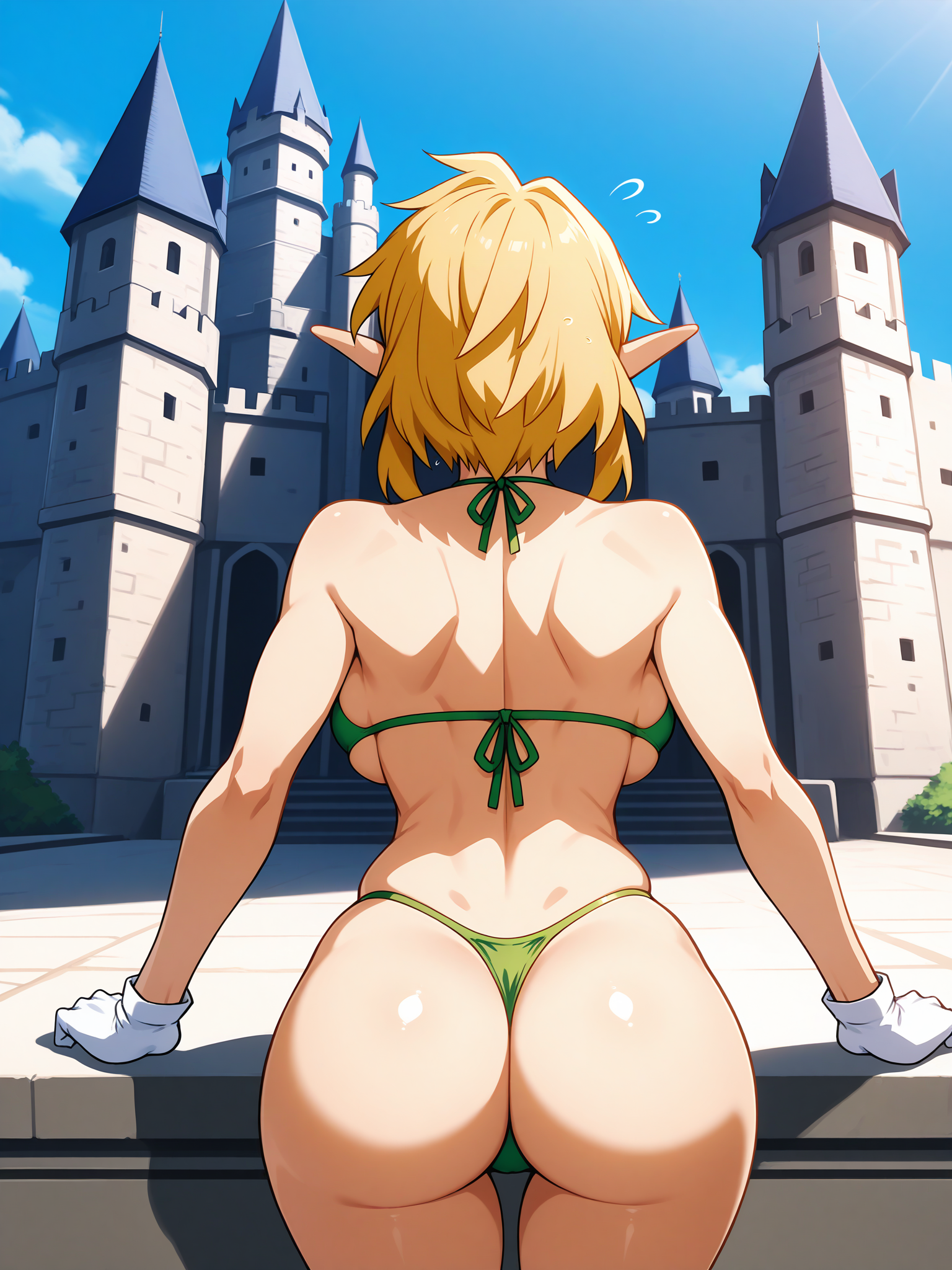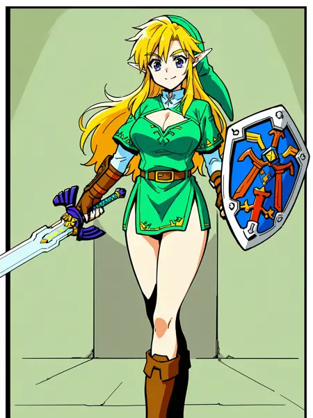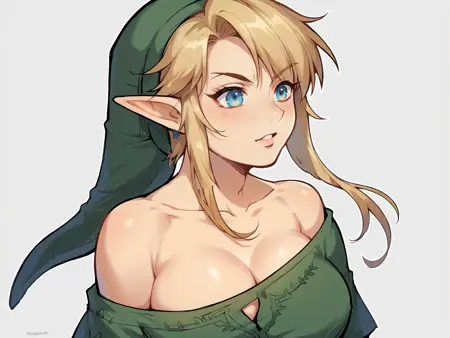 Link,精灵,1个女孩,大胸部,蓝眼睛,尖耳朵,金发,