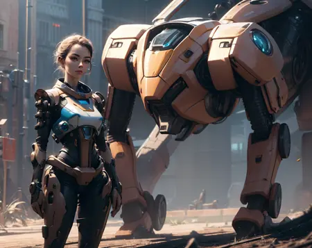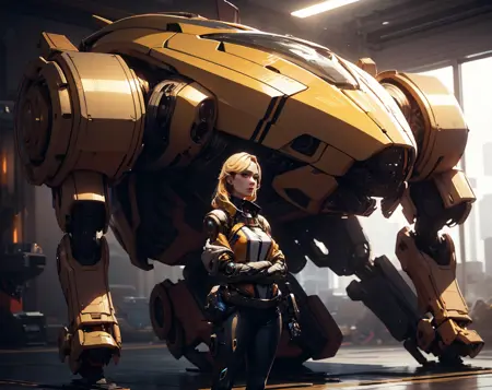用于生成包含机甲和人物的场景。由于在小数据集上训练,可能存在一定程度的过拟合。通过使用 standing with mech 激活,增加权重通常能获得更好的效果。如果人物角色距离较远,建议使用超分辨率工具或adetailer来提高面部的分辨率。数据集包含男性和女性角色,但偏向于女性角色。