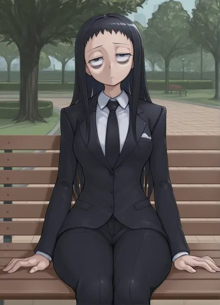더 나은 외모를 위해 "긴 목, 눈 밑 다크서클, 매우 긴 머리, 검은 머리, (검은 눈:1.2)"를 추가하세요.
