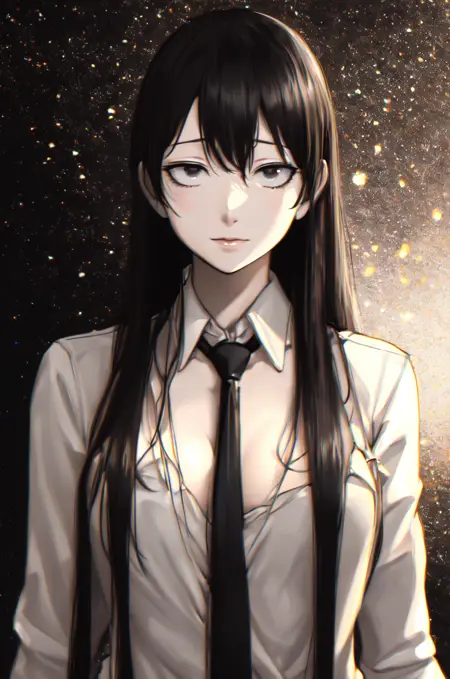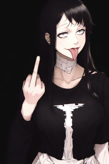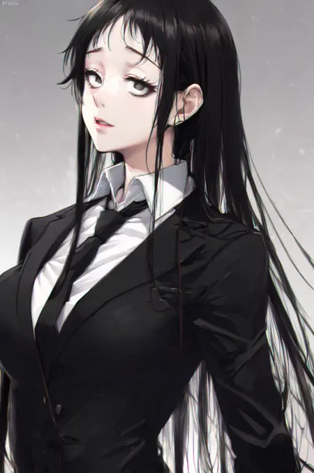 더 나은 외모를 위해 "긴 목, 눈 밑 다크서클, 매우 긴 머리, 검은 머리, (검은 눈:1.2)"를 추가하세요.