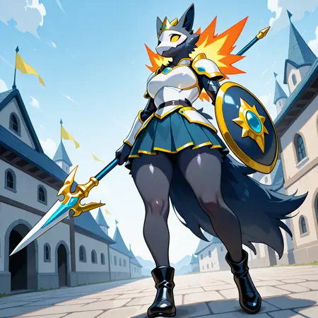She's Pyska, a girl born from an unusual mix of species and characters, those being Typhlosion + Tasque Manager + Puro + Protogen