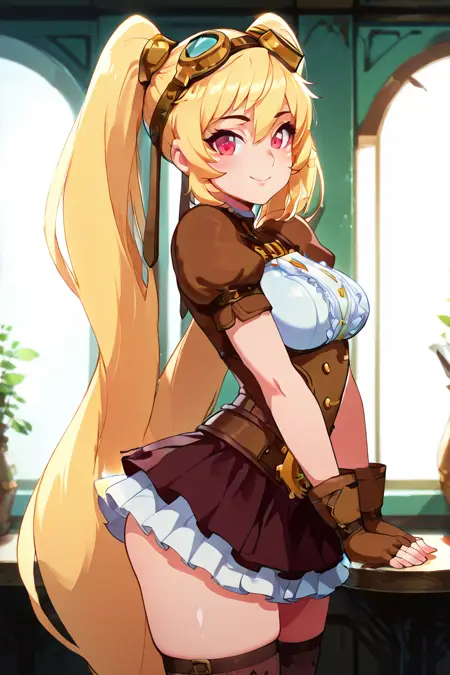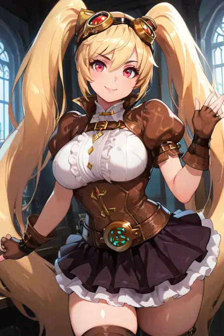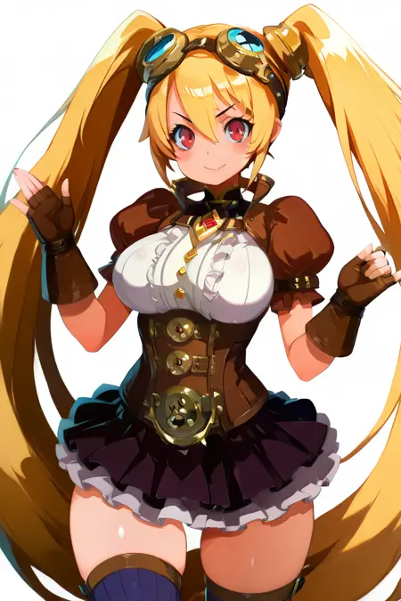 | 训练词汇 | zzLayla, solo, 1girl, twintails, blonde, blonde hair, long hair, very long hair, red eyes,已复制! zzLayla, solo, 1girl, twintails, blonde, blonde hair, long hair, very long hair, red eyes, goggles, goggles on head, gloves, thighhighs, skirt, short sleeves, fingerless gloves, puffy sleeves, brown gloves, puffy short sleeves,已复制! |