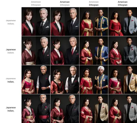 People tend to lean towards asian traits for eyes and hair. This can be addressed by adding nationality to the positive prompt. Nationalities that work with high consistency are: American, Indian, Nigerian, Japanese, and Ethiopian. Others such as European, Swiss, Mexican, work but not as consistently.