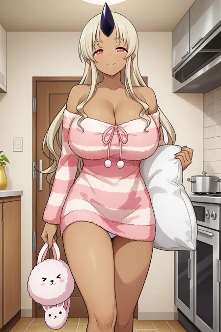 주요 태그: mmTionishia, 빨간 눈, 백금색 머리, 긴 머리, 햇빛에 탄 피부, 몬스터 소녀, 오니, 거인여자, 한 개의 뿔, 거대한 가슴