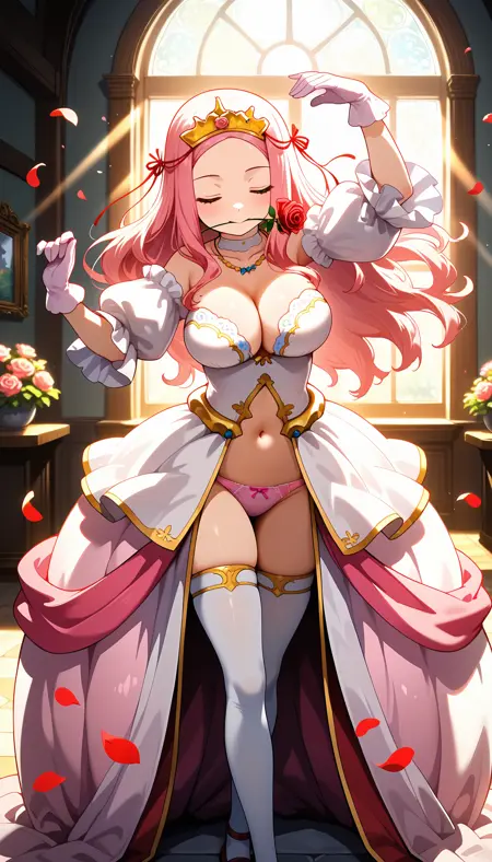 Recommend Prompts (clothing): dress, puffy sleeves, detached sleeves, gloves, bow panties, pink panties, thighhighs, shoes,