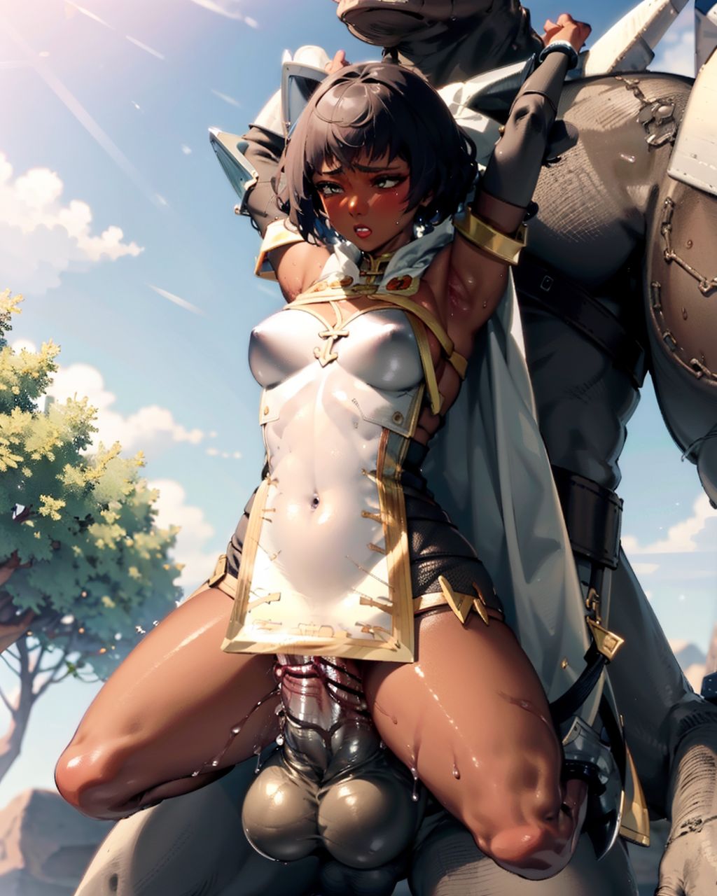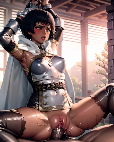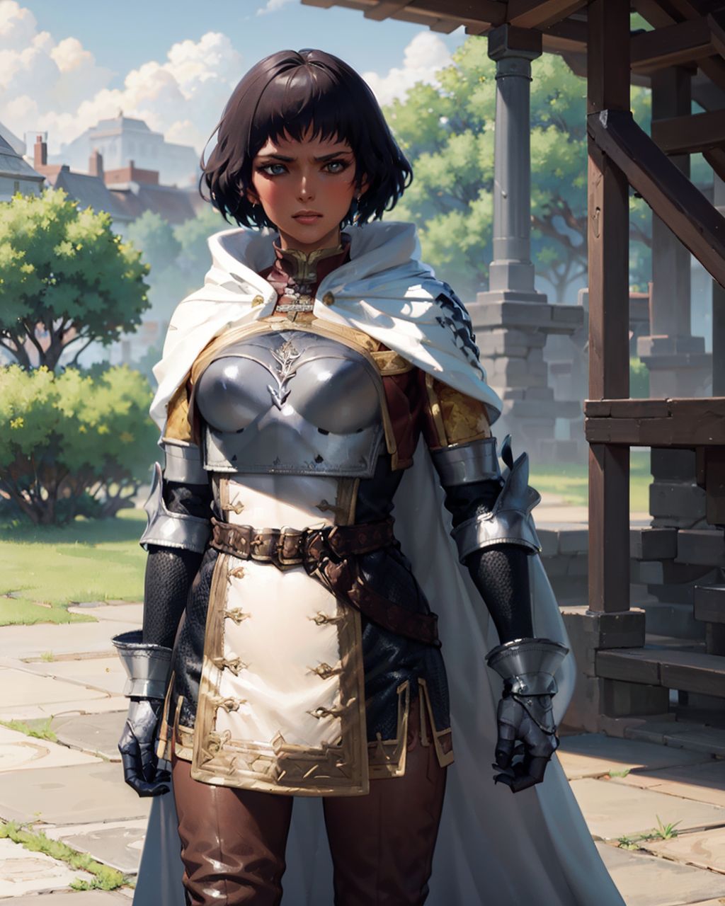 追加: レース、アーマー、黒髪、戦闘ポーズ、剣を構える、