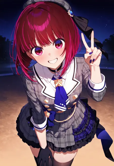 1girl, firefly \(honkai: star rail\), honkai \(series\), honkai: star rail, safe, casual, solo, looking at viewer, outdoors, smile, reaching towards viewer, night, masterpiece, high score, great score, absurdres