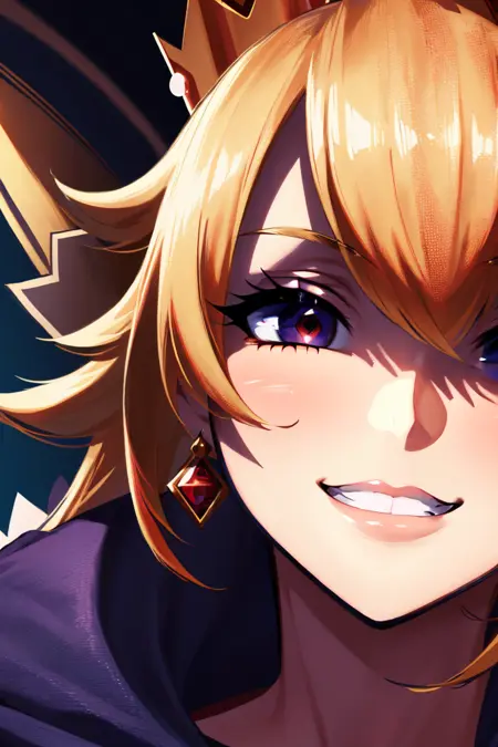 이 캐릭터는 팬아트마다 다르게 묘사되기 때문에 외모에 다양한 변형이 생깁니다. 대부분의 의상은 트리거 단어에 의해 흡수되므로, 트리거 단어만 사용하고 프롬프트에 구성/수정자를 추가하거나, 일부 태그를 혼합하여(예: "슈퍼 왕관", "짧은 소매", "보라색 장갑, 보라색 망토") 다른 결과를 시도해보세요.