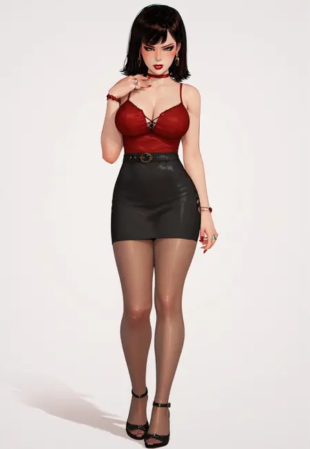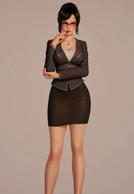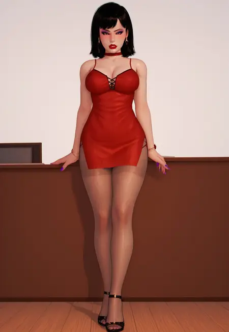 正装西装 / 红色上衣、裙子 / 红色连衣裙 / 眼镜 / 耳环 / 妆容