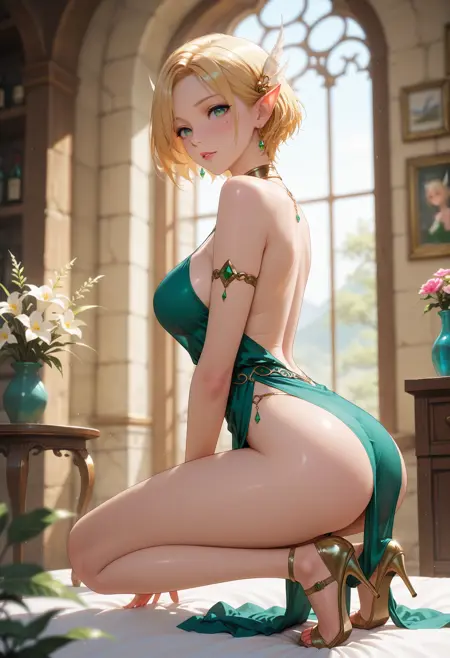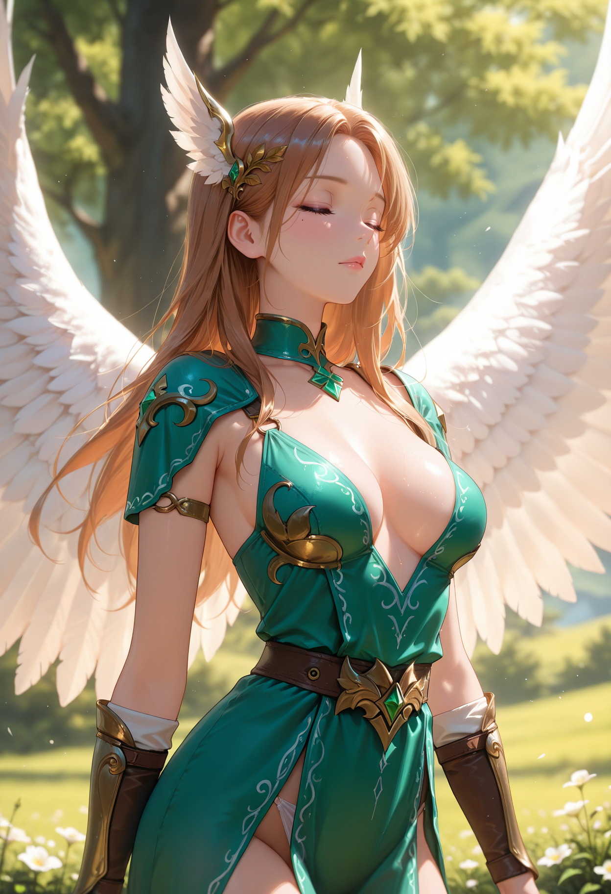 推奨タグ:1girl, solo, elf, head wings, pointy ears, breasts, lips, wings, angel wings