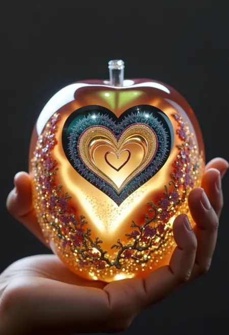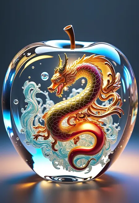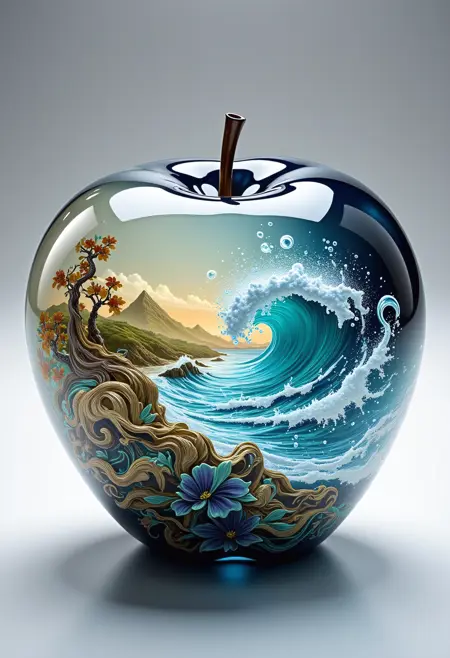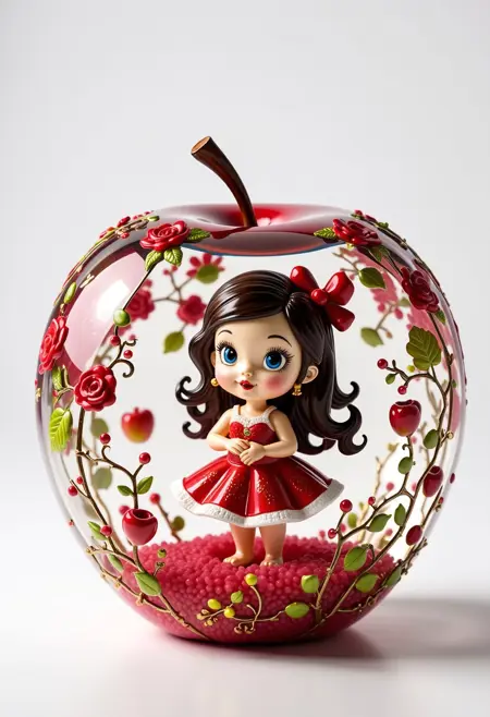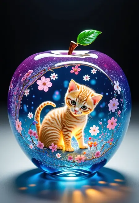 このLoRAは、透明なガラスのリンゴの内側にオブジェクトを生成します。