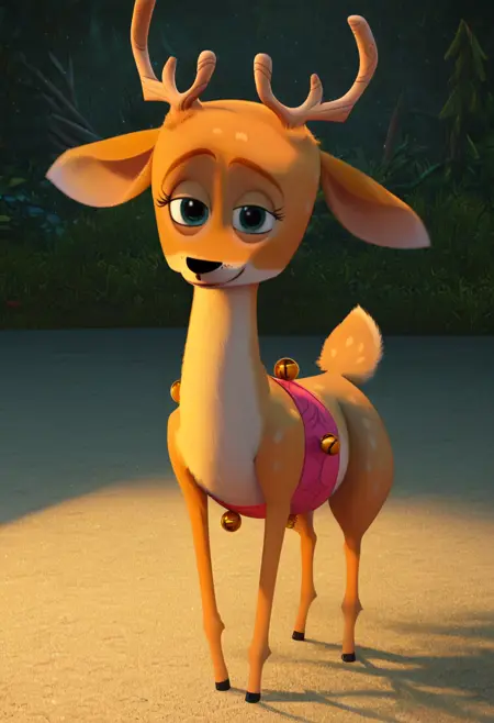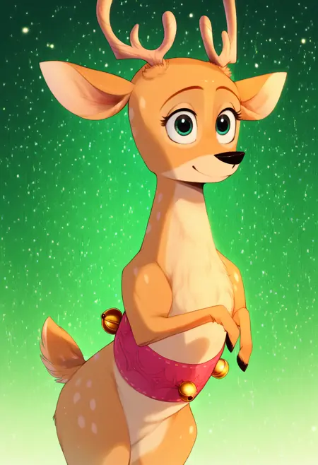 주요 프롬프트: 큐피드, 리들러, 리들러 뿔, 사슴 귀, 청록색 눈, 리들러 꼬리, 종이 달린 분홍색 벨트