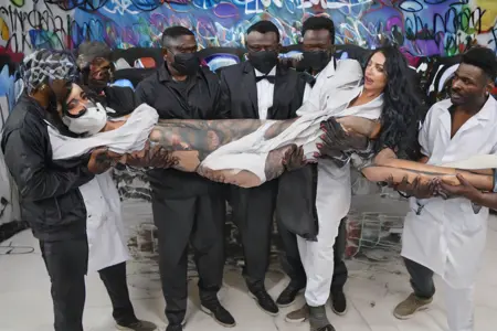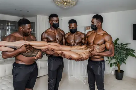 lora:crrysdmxFT15:1.0 {crrysdmxft, }{1girl, }{multiple boys, }{realistic, }{carrying, }{facial hair, |}{dark-skinned male, }{princess carry, |}{looking at viewer, ||||}{standing, ||||||}{hetero, ||||||}{navel, ||||||}{interracial, |||||||}{3boys, |||||||}{open mouth, |||||||}{5boys, ||||||||}{4boys, ||||||||}{very dark skin, ||||||||}{grabbing, |||||||||}{male underwear, |||||||||}{holding, |||||||||}{beanie, |||||||||}{looking at another, |||||||||}{6+boys, |||||||||}{2boys, ||||||||||}{closed mouth, ||||||||||}{grabbing another's breast, ||||||||||}{bulge, ||||||||||}{black male underwear, ||||||||||}{dutch angle, ||||||||||}{sign, ||||||||||}{profanity, ||||||||||}{collar, ||||||||||}{hand on another's shoulder, ||||||||||}{mask, ||||||||||}{mouth mask, ||||||||||}{surgical mask, ||||||||||}{lace-trimmed legwear, ||||||||||}{legs, ||||||||||}{carrying person, ||||||||||}{boxer briefs, ||||||||||}{lifting person, ||||||||||}{bowtie, ||||||||||}{suit, ||||||||||}{panty pull, ||||||||||}{traditional bowtie, ||||||||||}{clothed male nude female, ||||||||||}{graffiti, ||||||||||}{tuxedo, ||||||||||}{black leotard, ||||||||||}{black tank top, ||||||||||}{lab coat, ||||||||||}{print shirt, |||||||||||}