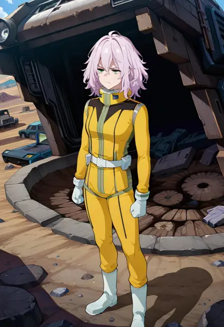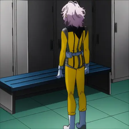 Outfit: normal suit, pilot suit, mecha pilot suit, yellow bodysuit, utility belt, white belt, white gloves, boots, white footwear,