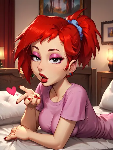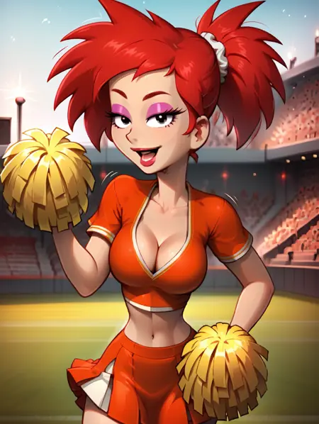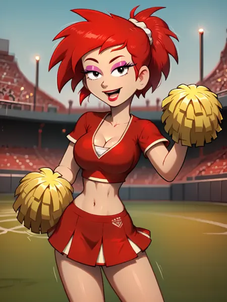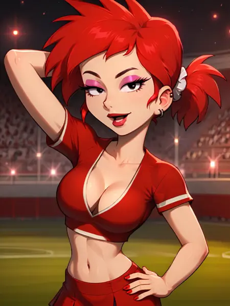 | 训练词汇 | rita, red hair, narrow waist, 1girl, toon (style), flat color, medium breasts, black eyes, long eyelashes, rita hair, short ponytail已复制! blue scrunchie,blue pants,pink skirt,white neckline,已复制! rita_open_hair,pearl necklace,red_outfit,red tube top,red long skirt, side slit skirt,red stiletto heels,gold bracelets,已复制! |