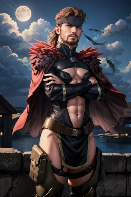 캐릭터가 이 복장을 입도록 하려면 "harrieroutfit, feather cape, navel, cleavage"를 추가하세요. "Pelvic curtain" 또는 "thighs"도 도움이 될 수 있습니다.