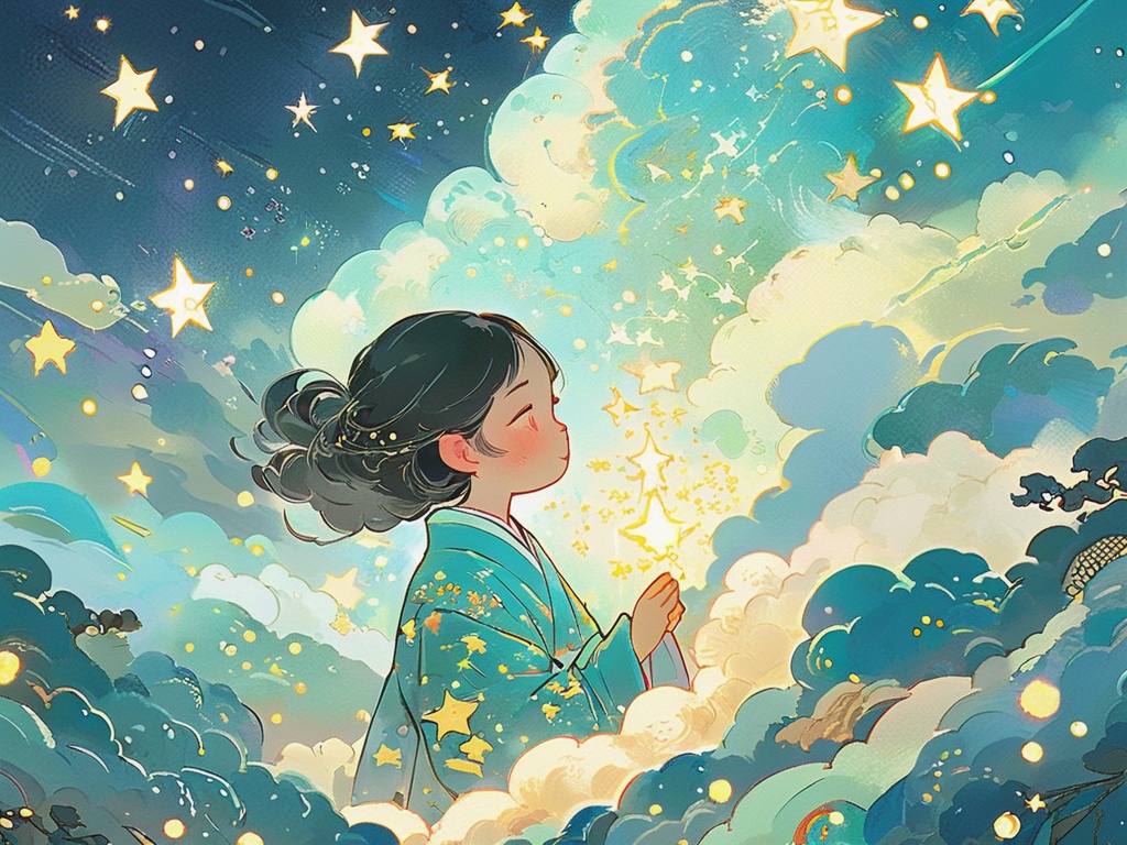 在画面中添加发光的星星,训练素材大多数是插画。