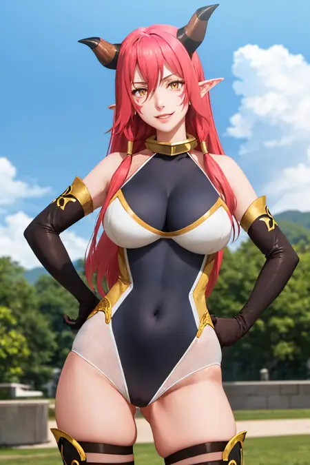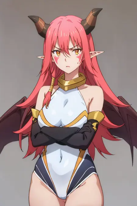 衣装 #3: 尖った耳, 角, リュオタード, 黒手袋, 肘まで手袋, 翼