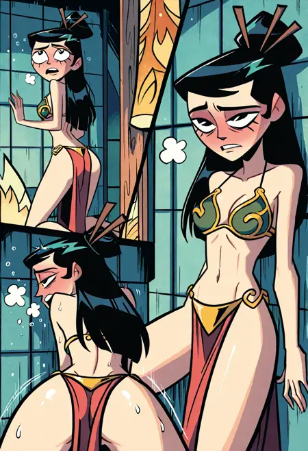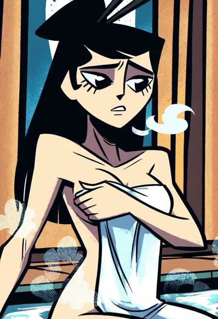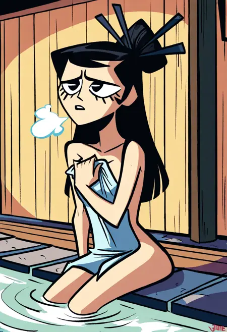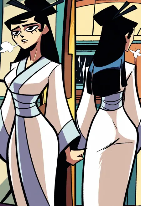 jaqueline, 1girl, white kimono, black hair, hair bun, hair stick, long hair