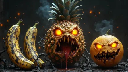 - 恐ろしい外観を持ち、生きているようなオブジェクトを生成するために作成されました。生きる果物や、輝きと不気味な特徴を持つ無生物のオブジェクトをテーマにしたプレゼンテーションや演出に最適です。
