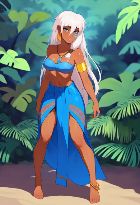 의상 프롬프트: necklace, earrings, anklet, armlet, blue tube top, blue sarong