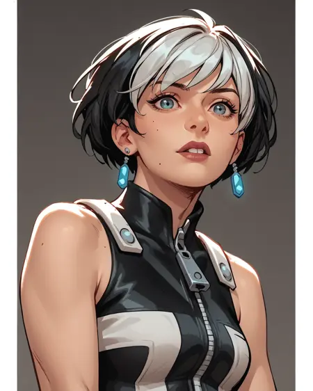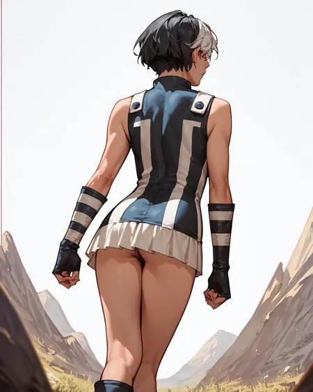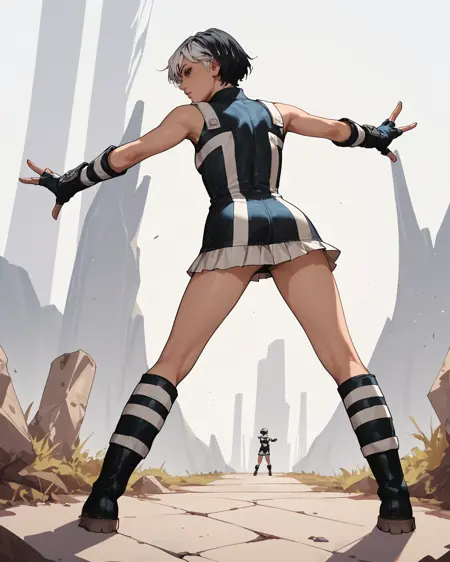 이색 헤어, 단발, 흰색 머리, 검은색 머리, 짧은 드레스, 장갑, 부츠