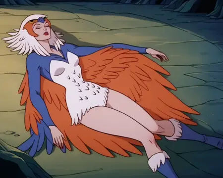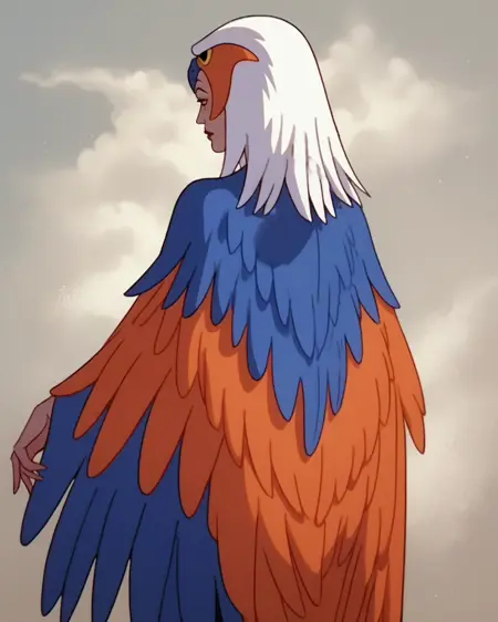 어떤 시점에서 그녀가 붉은 머리카락을 가지고 있음이 밝혀지는데(필름레이션의 모든 여성 캐릭터는 붉은 머리카락을 가지고 있었음...), 훈련 데이터에서 붉은 머리카락이 나타나는 유일한 경우는 마법사가 되기 전의 티엘라나 형태입니다. 그러나 한 가지 부작용으로, 하르피 버전에서 머리카락을 사용했기 때문에, “빨간 머리카락, 풀어진 머리, 곧은 머리” 같은 보조 키워드 없이도 복잡한 하르피 머리카락이 생성됩니다.