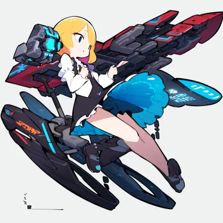 This LoRA is trained to be close to the amazing artstyle of Eiken3kyuboy known for their mechanical and cute creations.