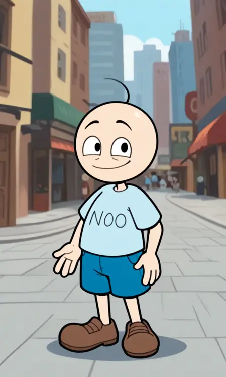 light blue short-sleeved shirt, blue shorts, brown shoes