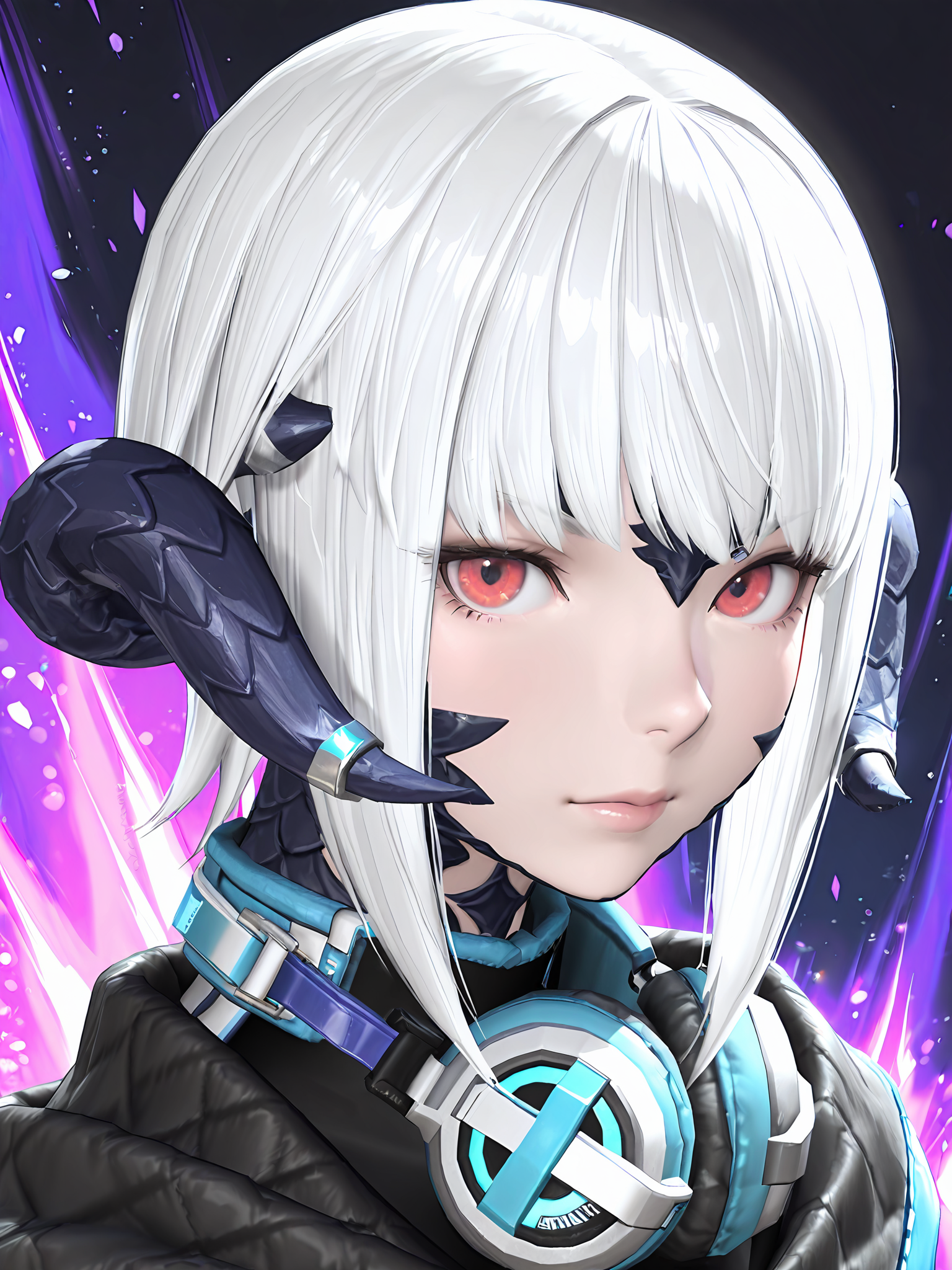 lora:aura4_Illustrious:1, aura4FF14, au ra, horns, dragon horns, scales, red eyes, white hair, short hair, bangs,