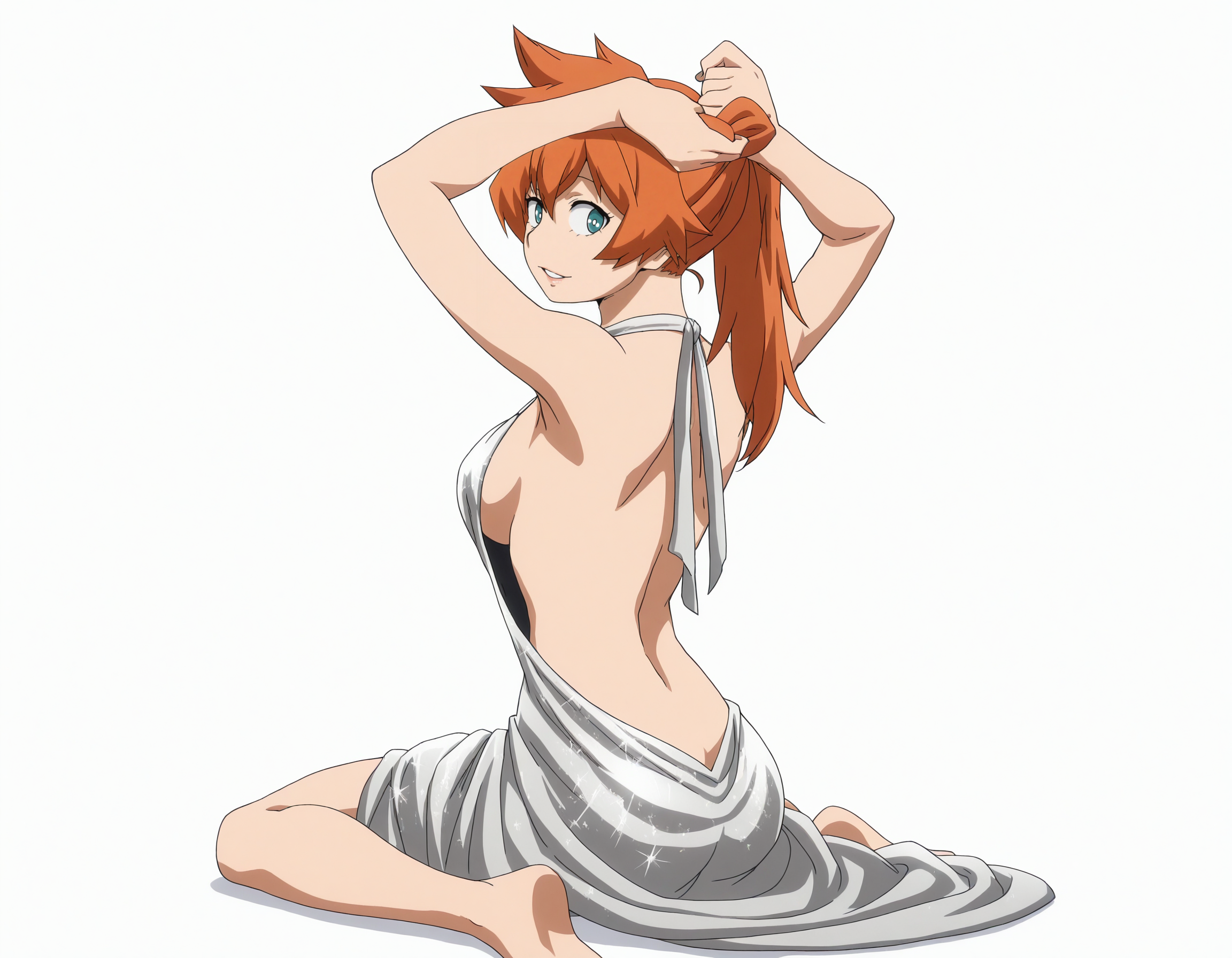 1tsuk2, 1girl, aqua eyes, side ponytail, orange hair