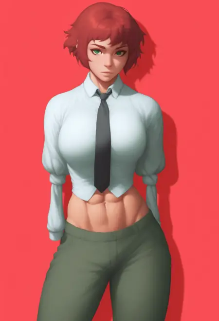 メイン衣装には以下を使用してください:NSRinBase、片腕切断、赤髪、短髪、緑の目、白いシャツ、緑のズボン、黒いネクタイ、袖は結び止め