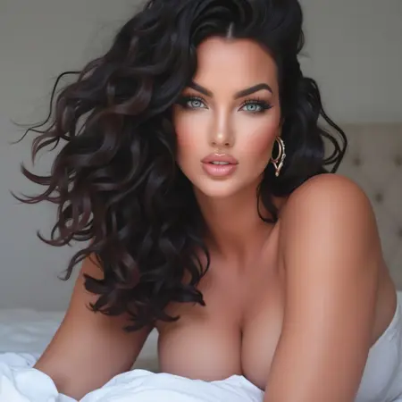 黑发蓝眼的女性,身材丰满曲线诱人。一切美好的特质。