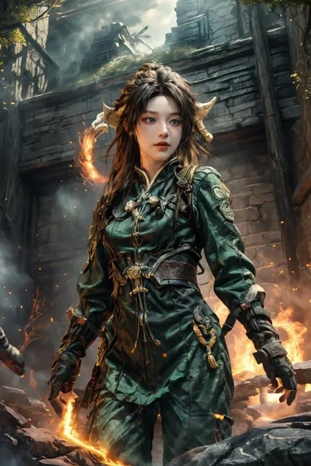 2. Recommended tag writing methods: tianqingniu, masterpiece, ultra high resolution, artwork, 3D, CG, real engine 5, (mew: 1.1), a Huge body shape, exit details, light and shadow effects, light yellow and 32 kextreme perspectives, Majic ring, bull, green hair,