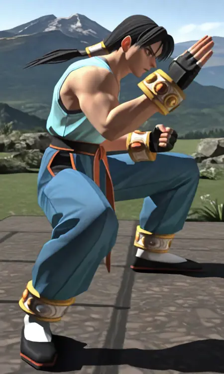 | 训练词汇 | LongBR2, 1boy, black hair, brown eyes, ponytail, orange metal tube scrunchies with silver accents已复制! LongBR2, 1boy, long black hair, brown eyes, untied hair, long hair已复制! light blue v-neck tank top已复制! white bracers with gold accents已复制! black fingerless gloves已复制! white ankle bracelets with gold details已复制! |