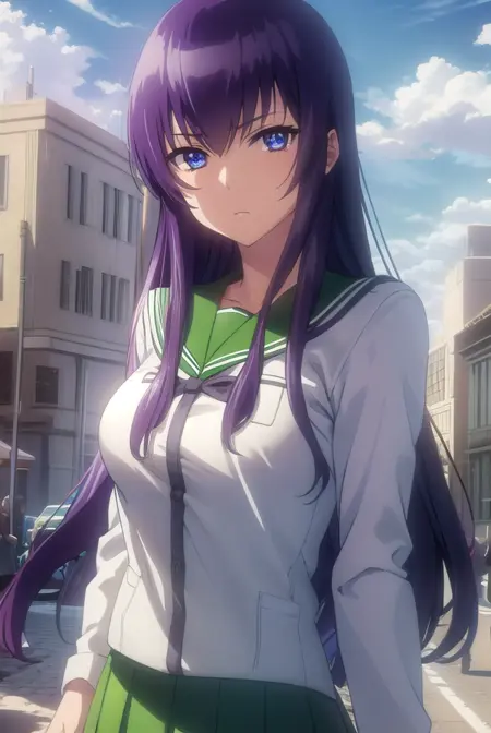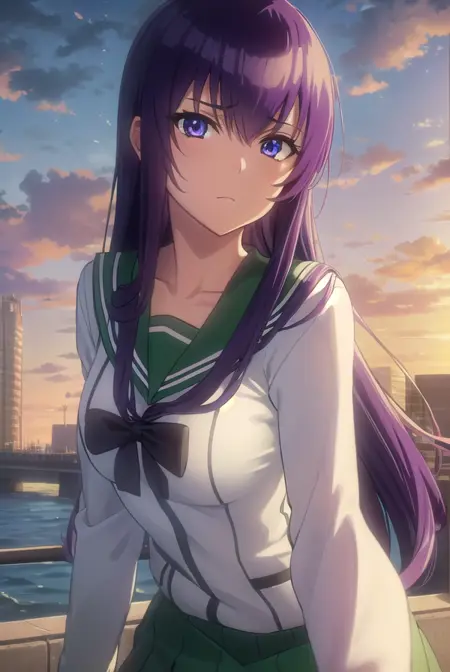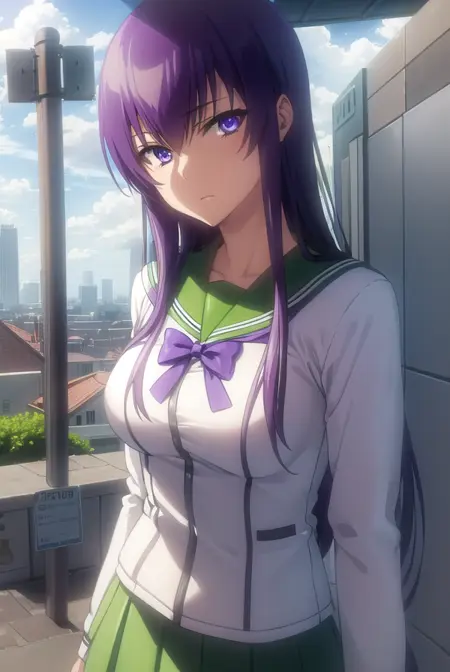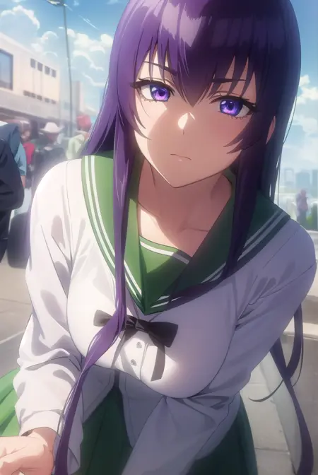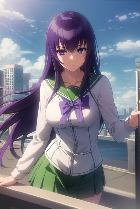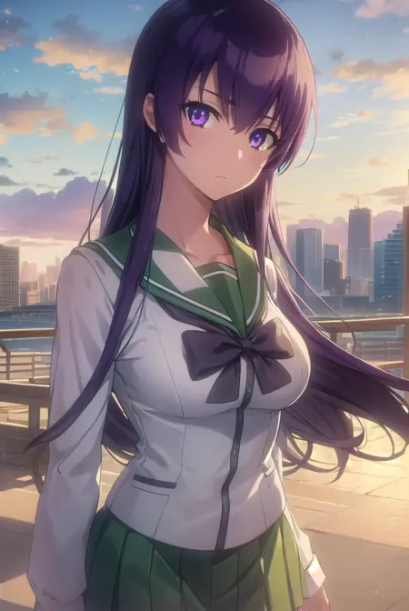 saeko busujima,长发,紫色头发,(紫色眼睛:1.1),头发遮住眼睛,