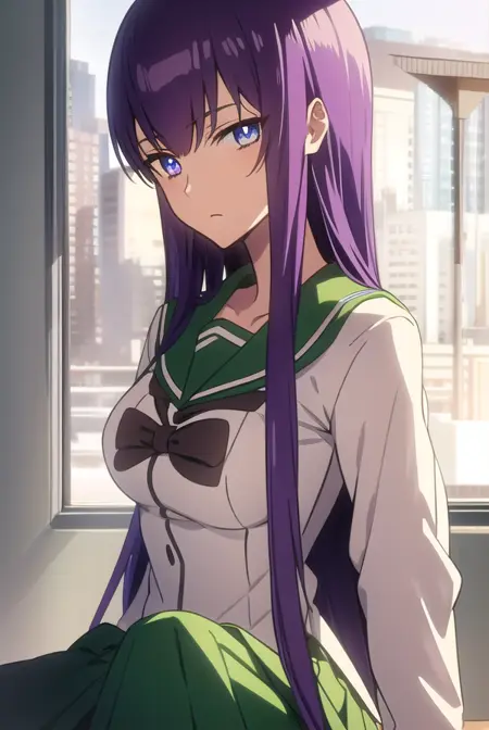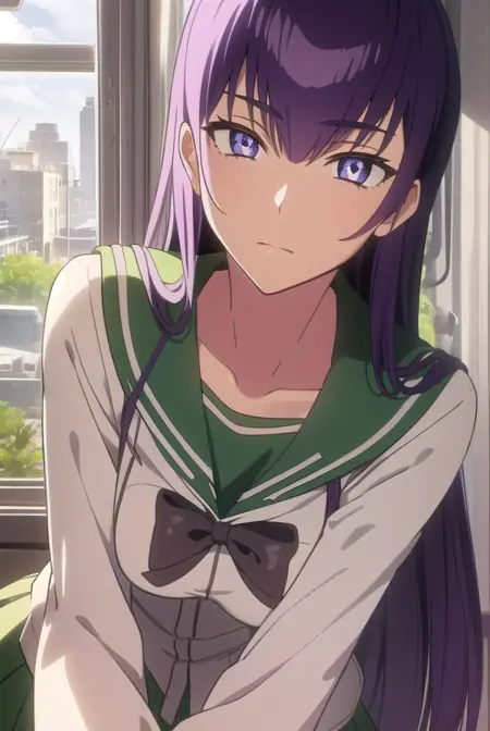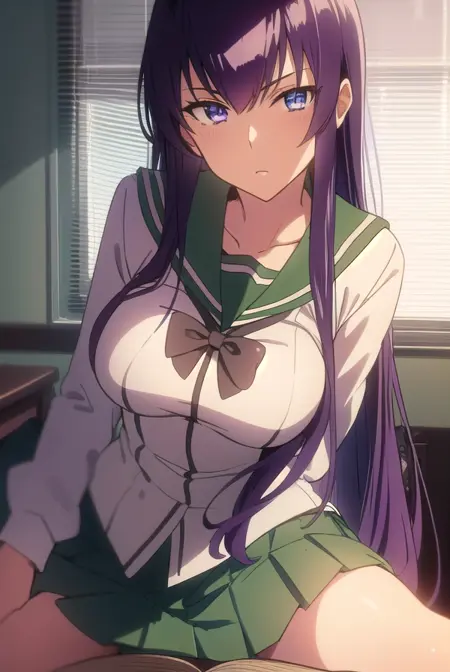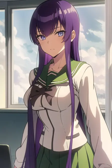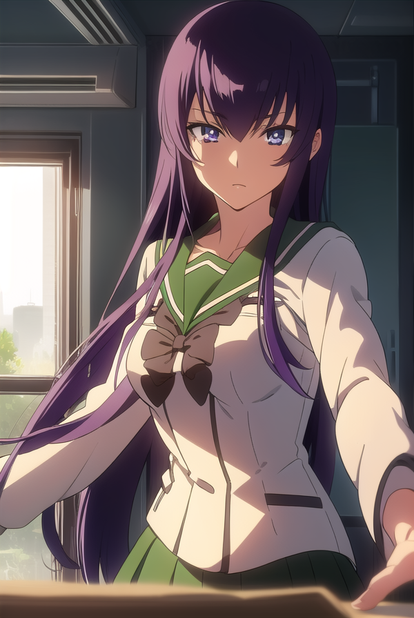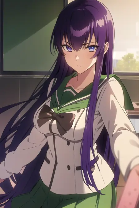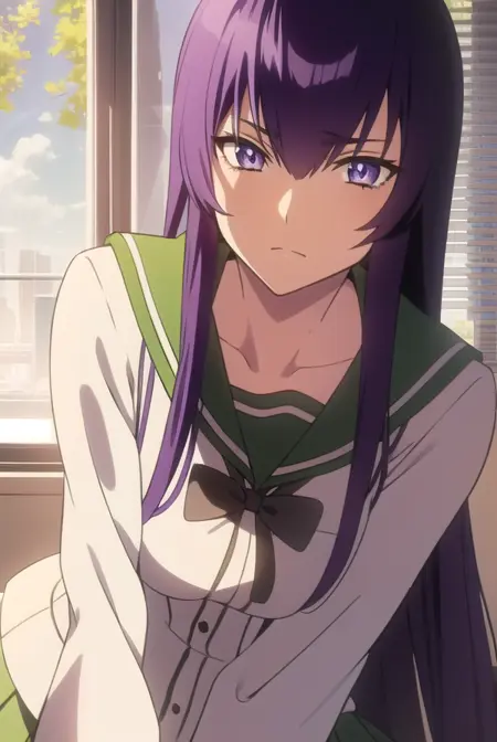 saeko busujima,长发,紫色头发,(紫色眼睛:1.1),头发遮住眼睛,