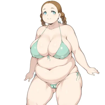 chubby, plump, huge breasts, puffy areolae, double belly, fupa, fat mons, cameltoe, thick thighs, fat rolls,