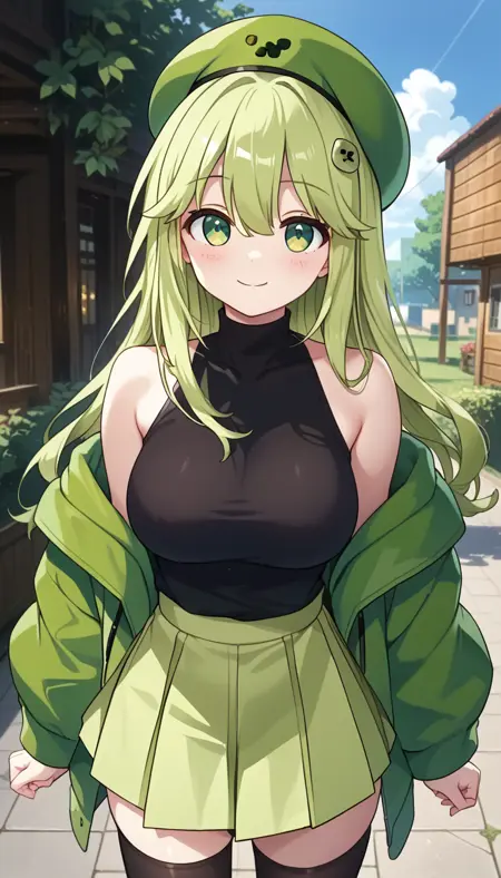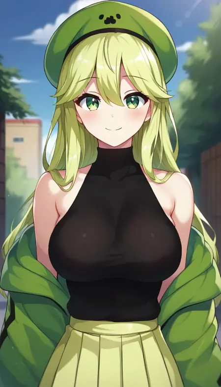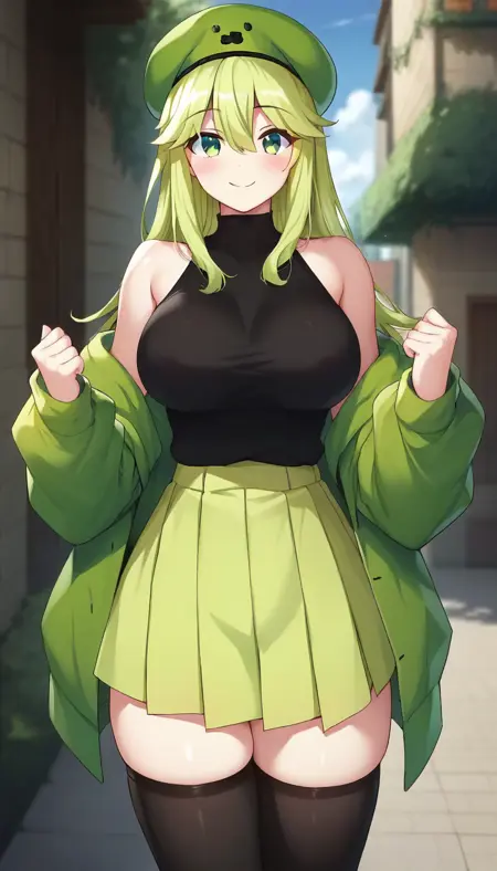 这是游戏《我的世界》中的娘化怪物苦力怕。使用了主创“泡沫星球”画风制作。