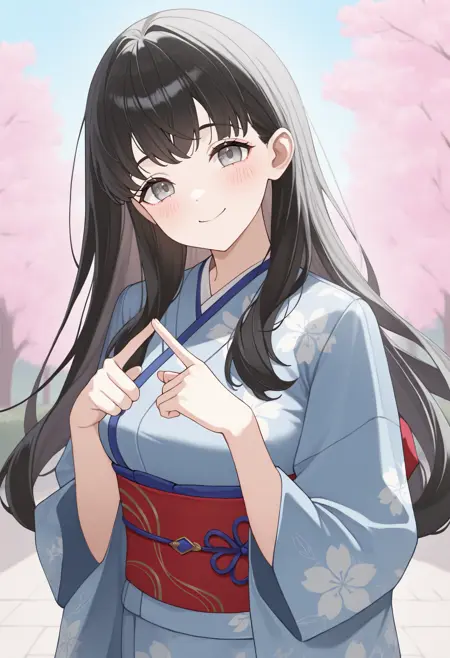 맞춤 옷차림: tao, 검은 머리, 긴 머리, 불규칙한 앞머리, 회색 눈