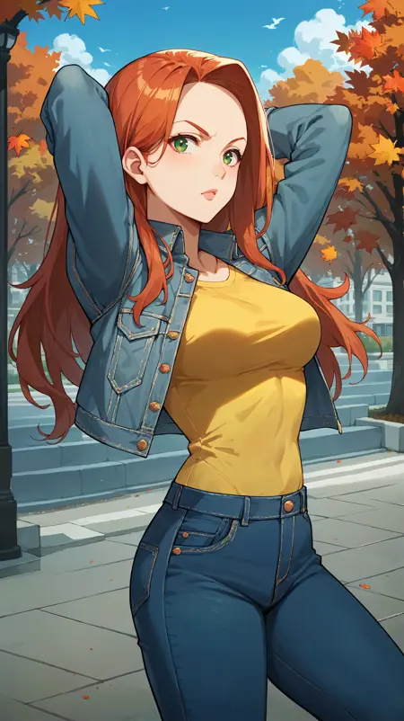 长发,红发,绿眼,超级英雄制服,粉红色紧身衣,粉红色短裤,粉红色斗篷,粉红色手套,裸露双腿,粉红色靴子,