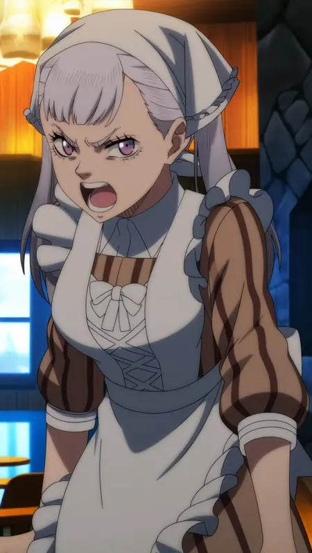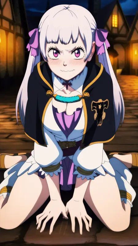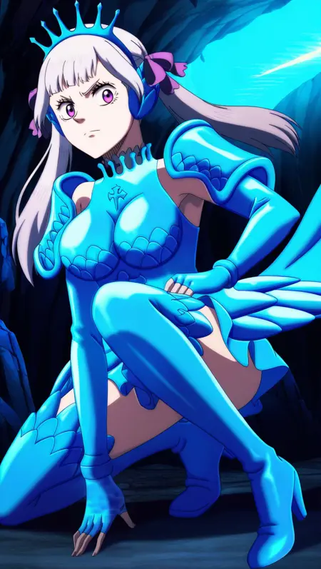 noelle silva、シルバーの髪、パープルの目、前髪、ロングヘア、ツインテール、